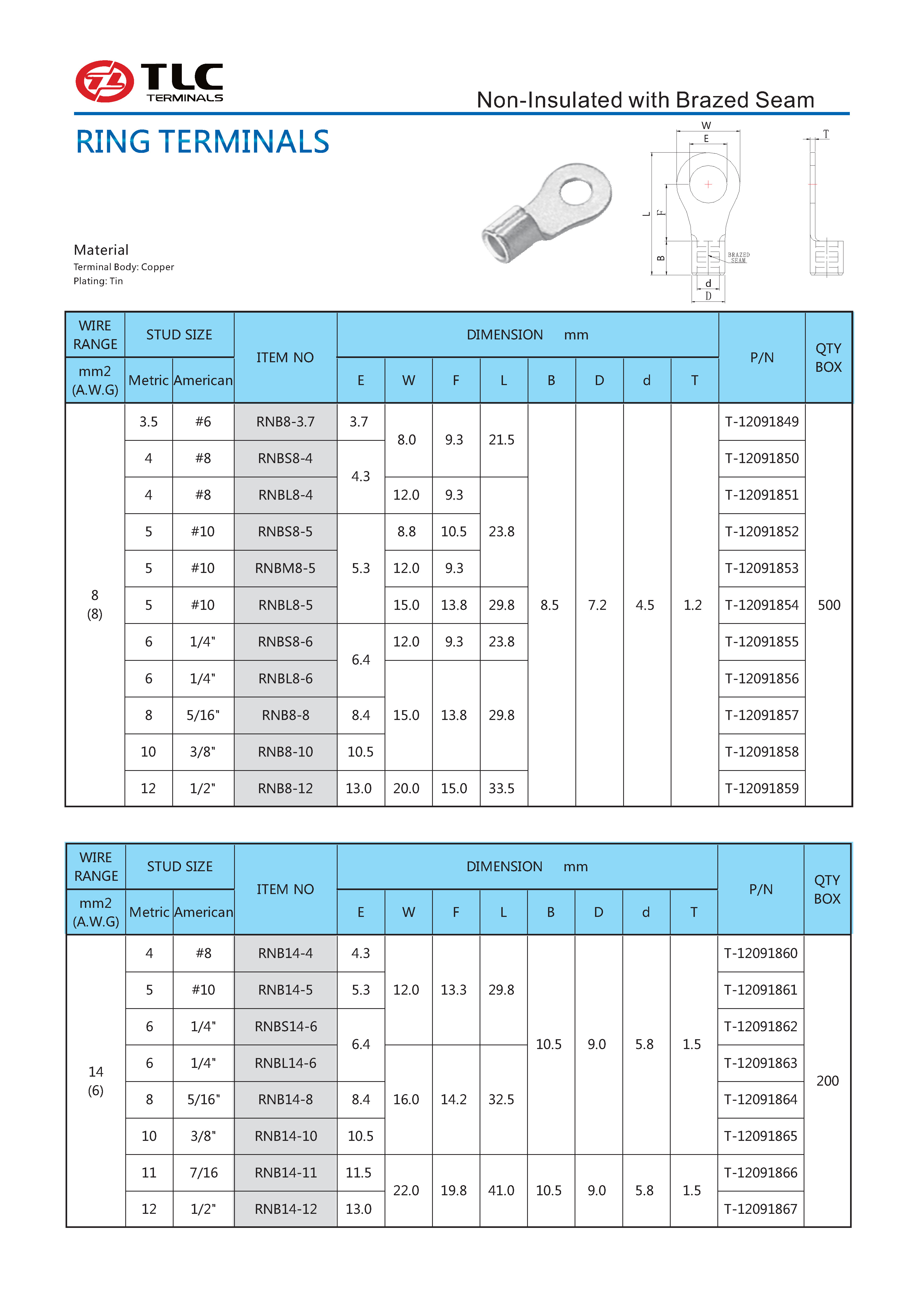 RNB无绝缘护套圆形端子(8-16mm²)