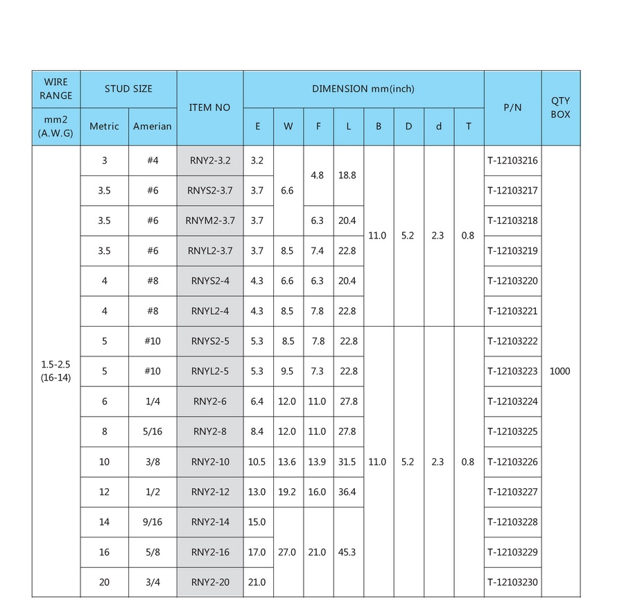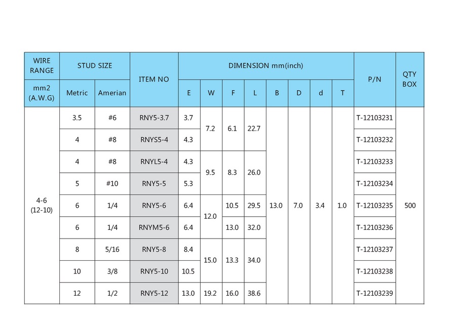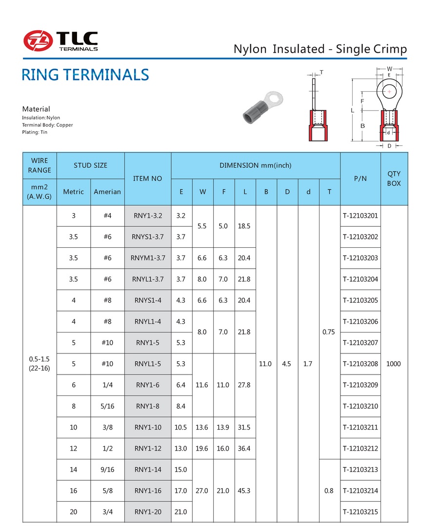 RNY端子(尼龙绝缘护套圆形端子)1.25-5mm²