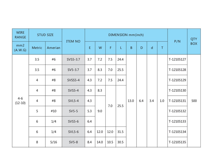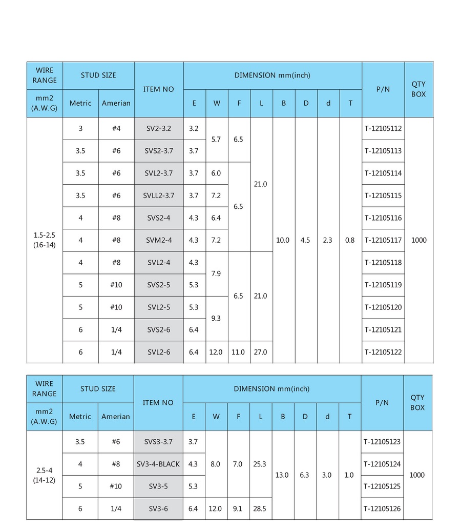 SV端子(PVC绝缘护套Y形端子)1.25-6mm²