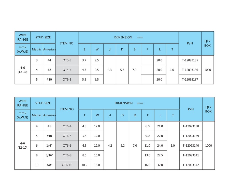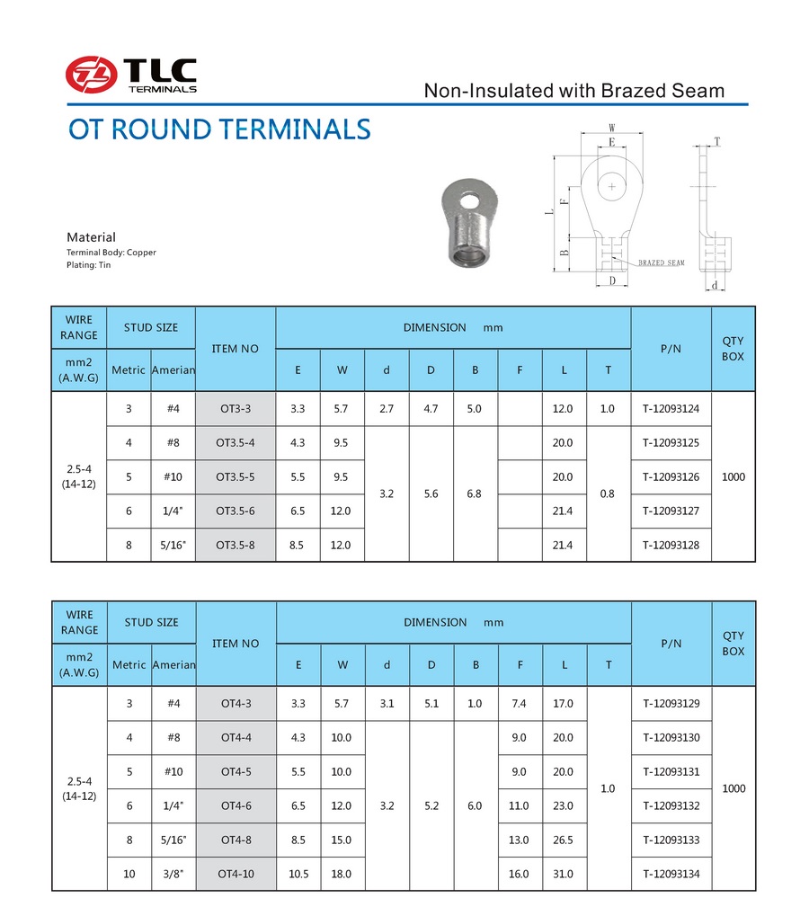 国标OT形端子(2.5-6mm²)