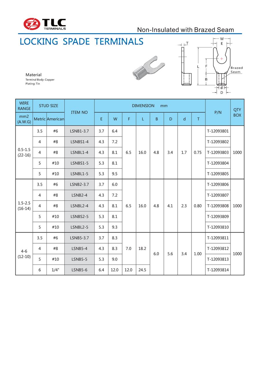 LSNB无绝缘片形端子