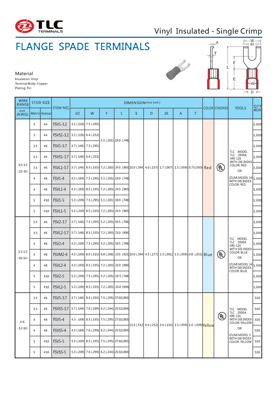 FSV(PVC绝缘护套凸缘Y型端子)
