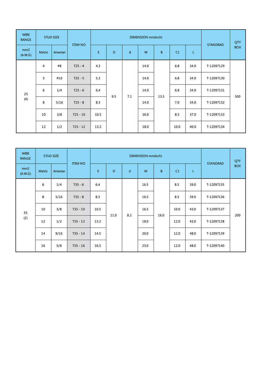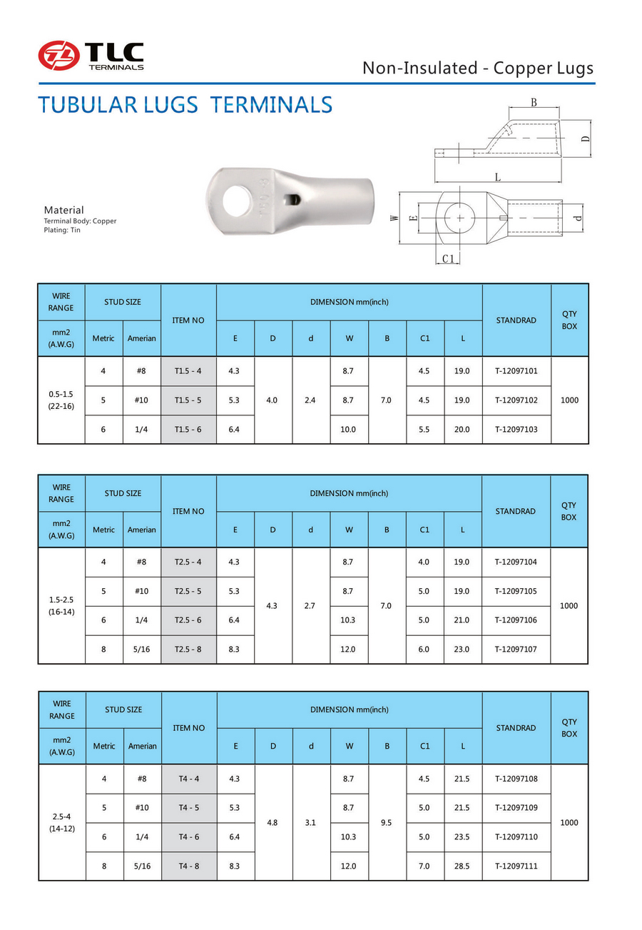 T系列紫铜管端子(1.25-35mm)