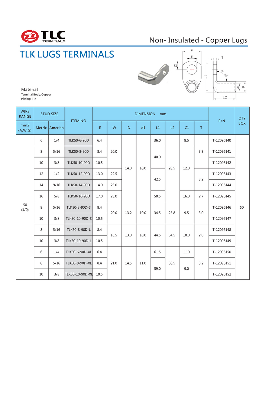 TLK-90D折弯系列紫铜管端子(50-120mm)