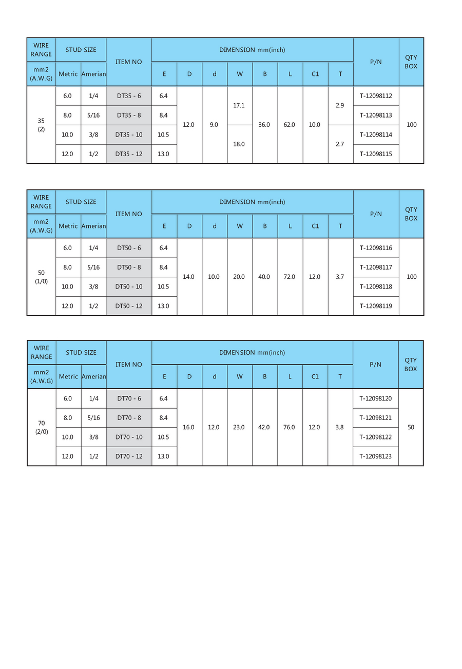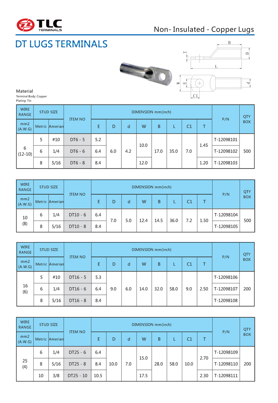 DT系列紫铜管端子(1.25-70mm)