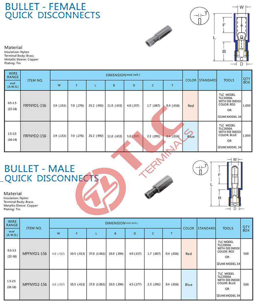 尼龙全绝缘护套子弹形公母插端子带铜套