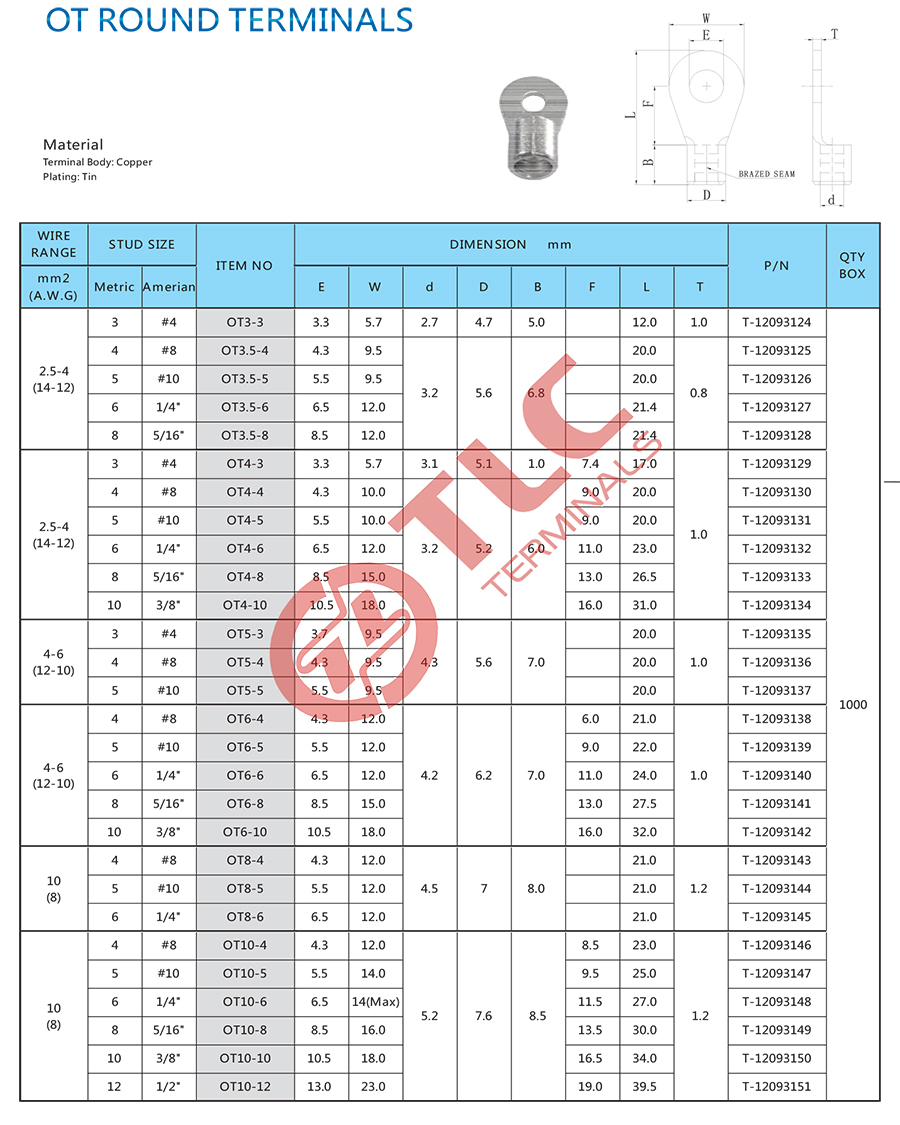 国标OT型裸端子