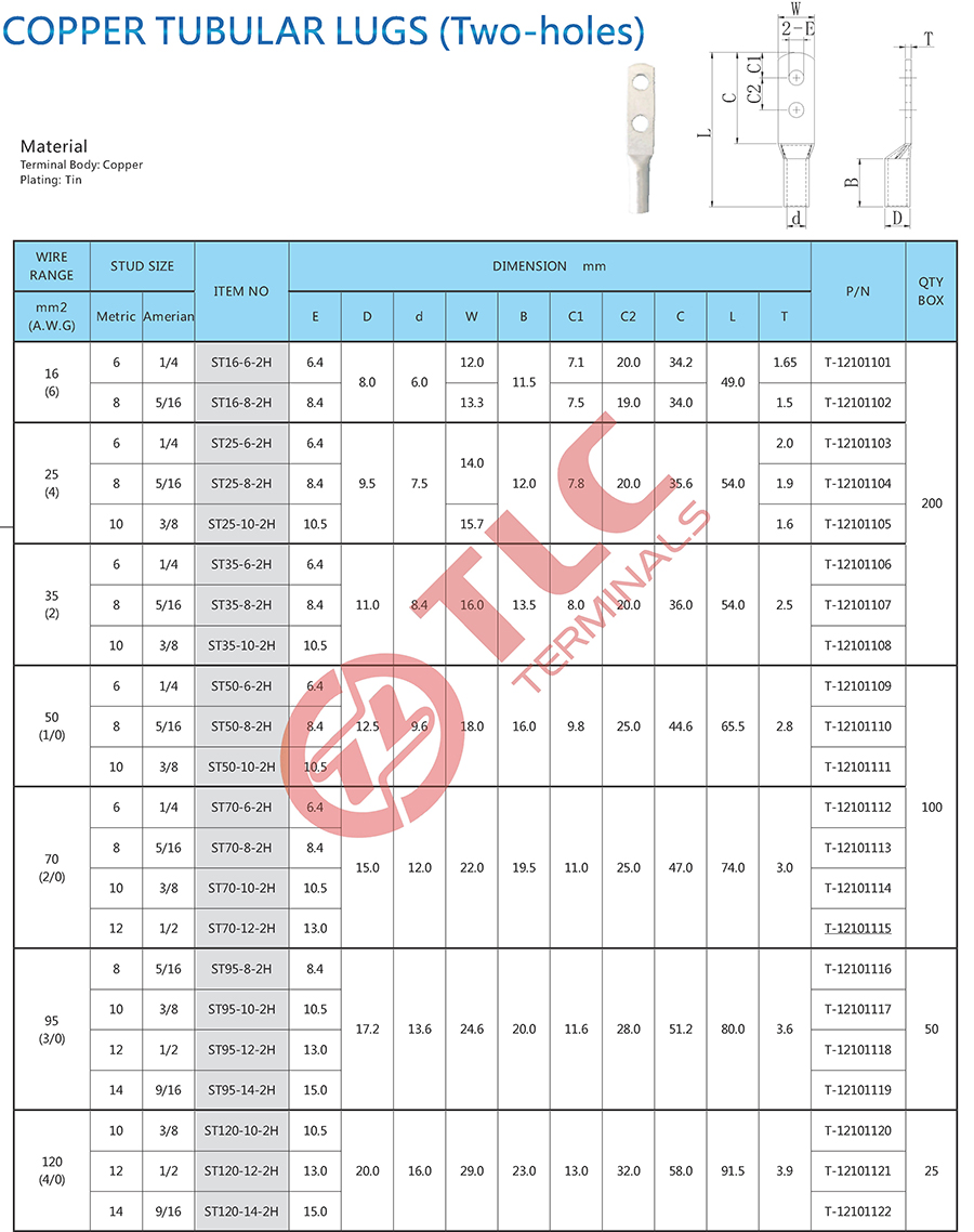 紫铜管双孔端子