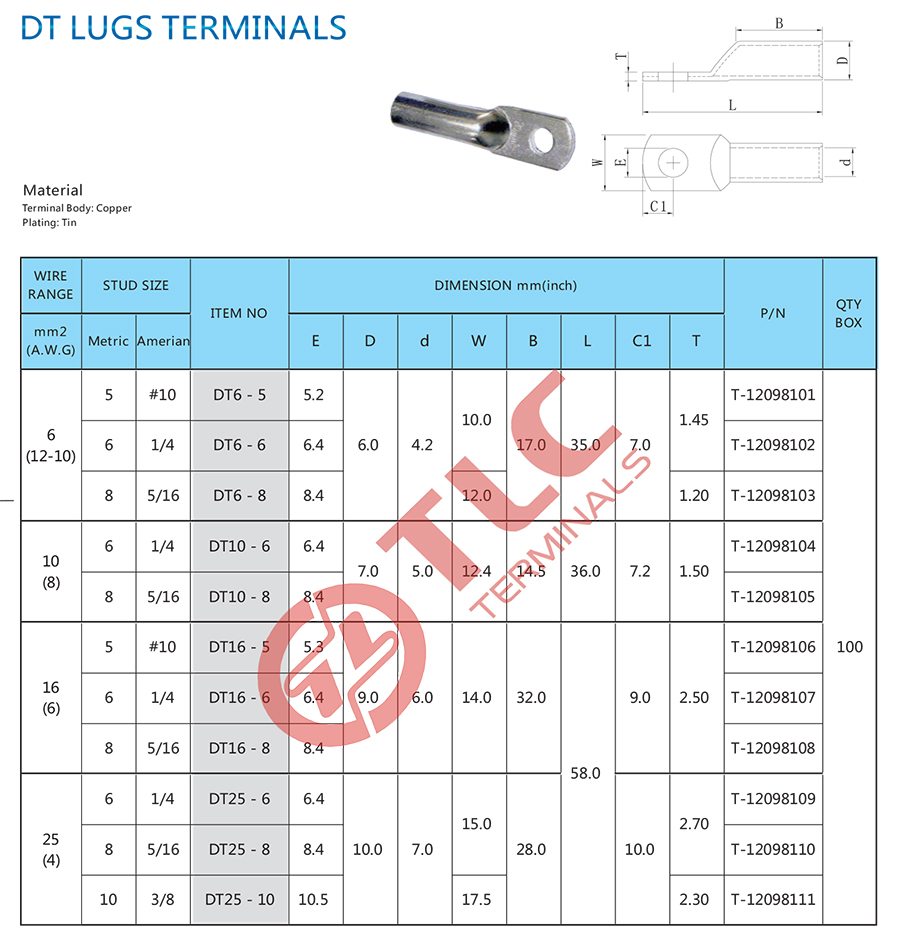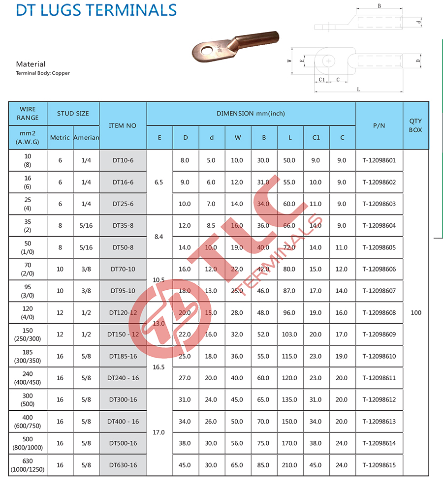 DT型紫铜管端子